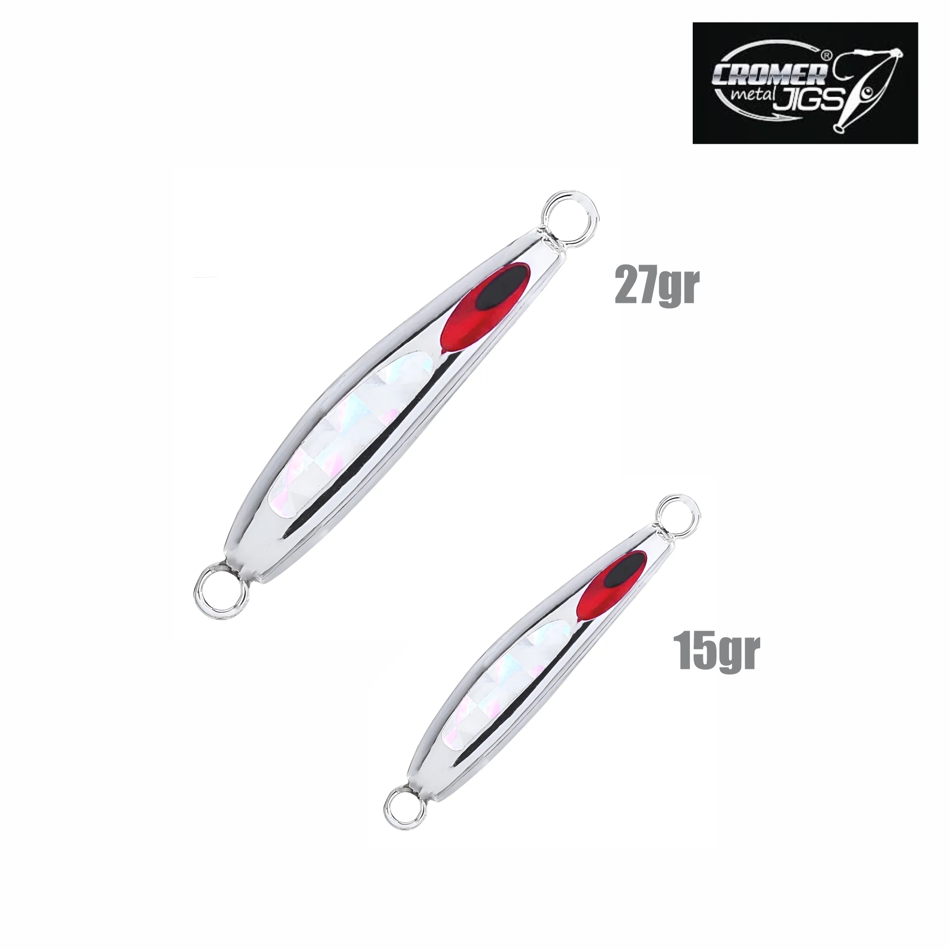 Os Cromer Metal jigs são únicos no mercado. Essas iscas são confeccionados com uma liga especial de metais trazendo dureza e passam por um processo de cromagem garantindo a mais alta durabilidade. Mesmo após varias fisgadas até de peixes de dente, os Cromers mantém o brilho. Os Cromers impressionam pela sua qualidade e acabamento. O processo de cromagem aliado a holográficos fazem destes Jigs uma arma poderosa para fisgar seu troféu.