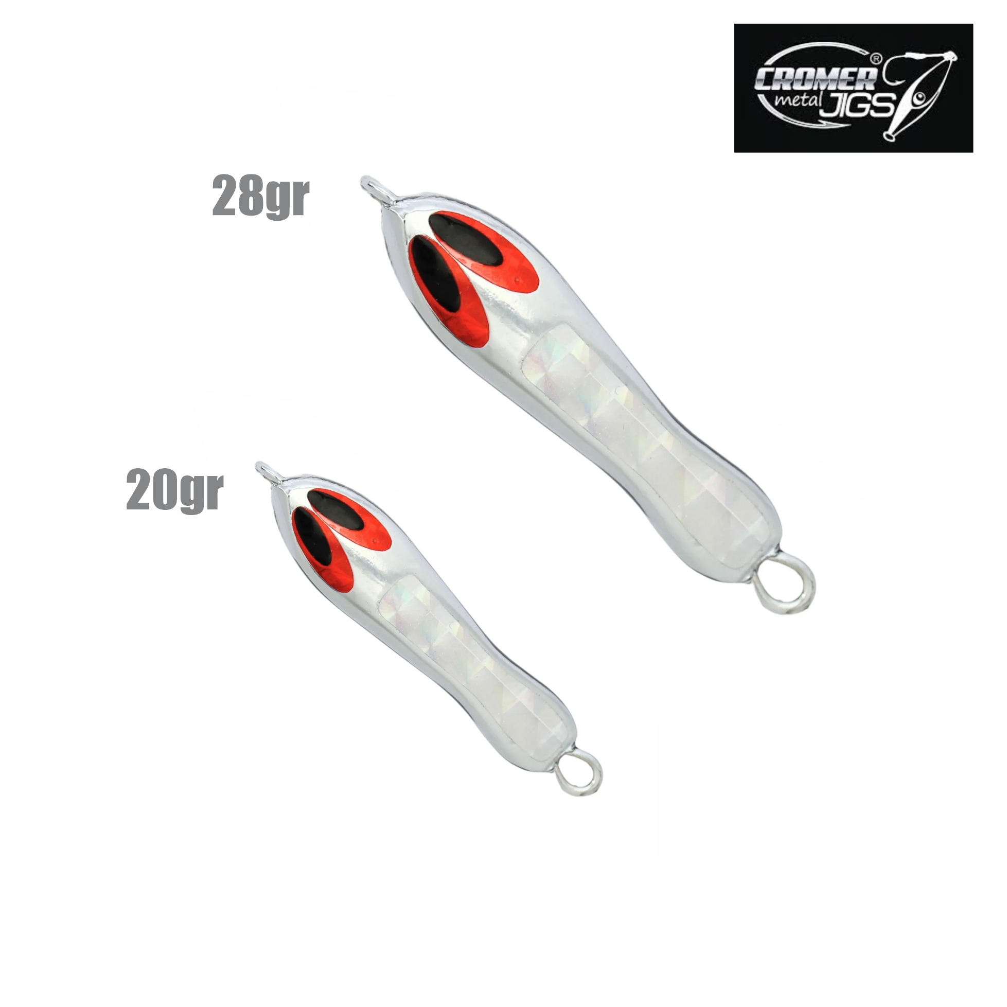 Os Cromer Metal jigs são únicos no mercado. Essas iscas são confeccionados com uma liga especial de metais trazendo dureza e passam por um processo de cromagem garantindo a mais alta durabilidade. Mesmo após varias fisgadas até de peixes de dente, os Cromers mantém o brilho. Os Cromers impressionam pela sua qualidade e acabamento. O processo de cromagem aliado a holográficos fazem destes Jigs uma arma poderosa para fisgar seu troféu.