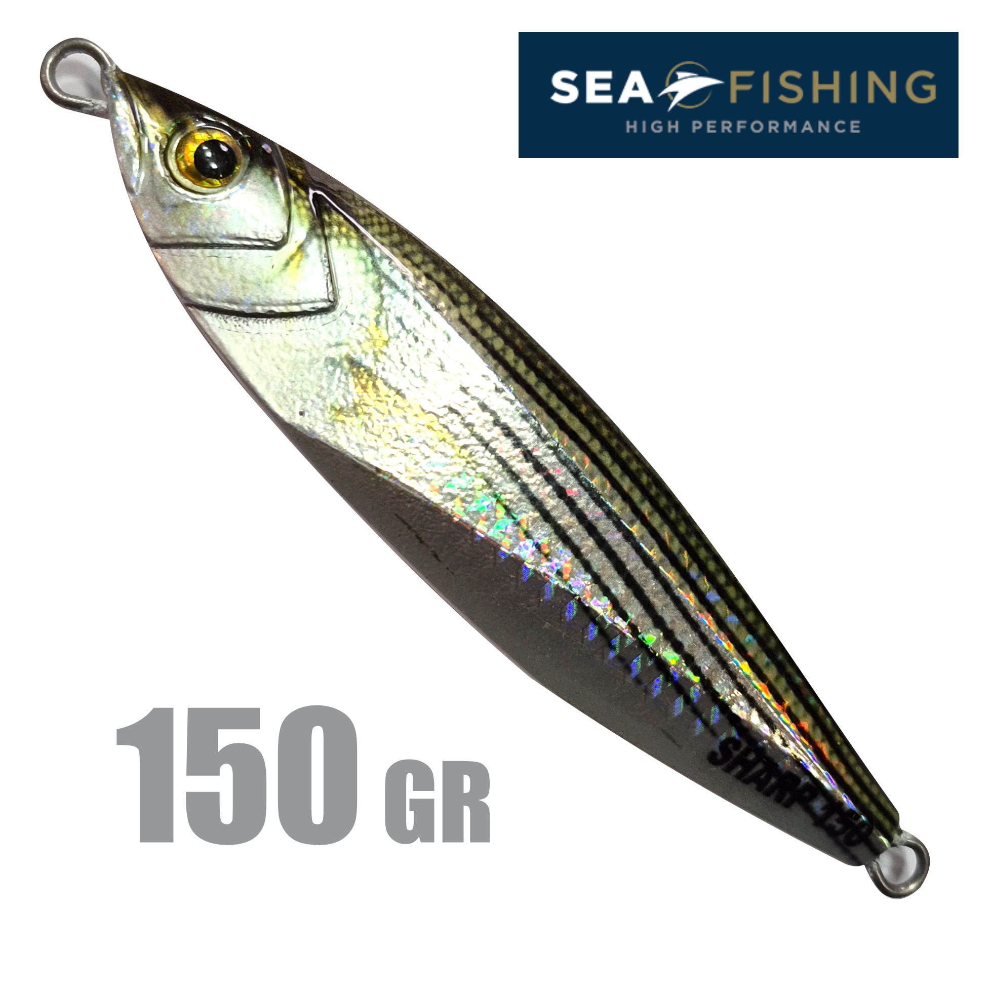 Marca: SEA FISHING Modelo: SHARP 150 Incluso: 1 Unidade Peso Aproximado: 150 GRAMAS Composição: Aço inox, Chumbo e Tinta Vinílica