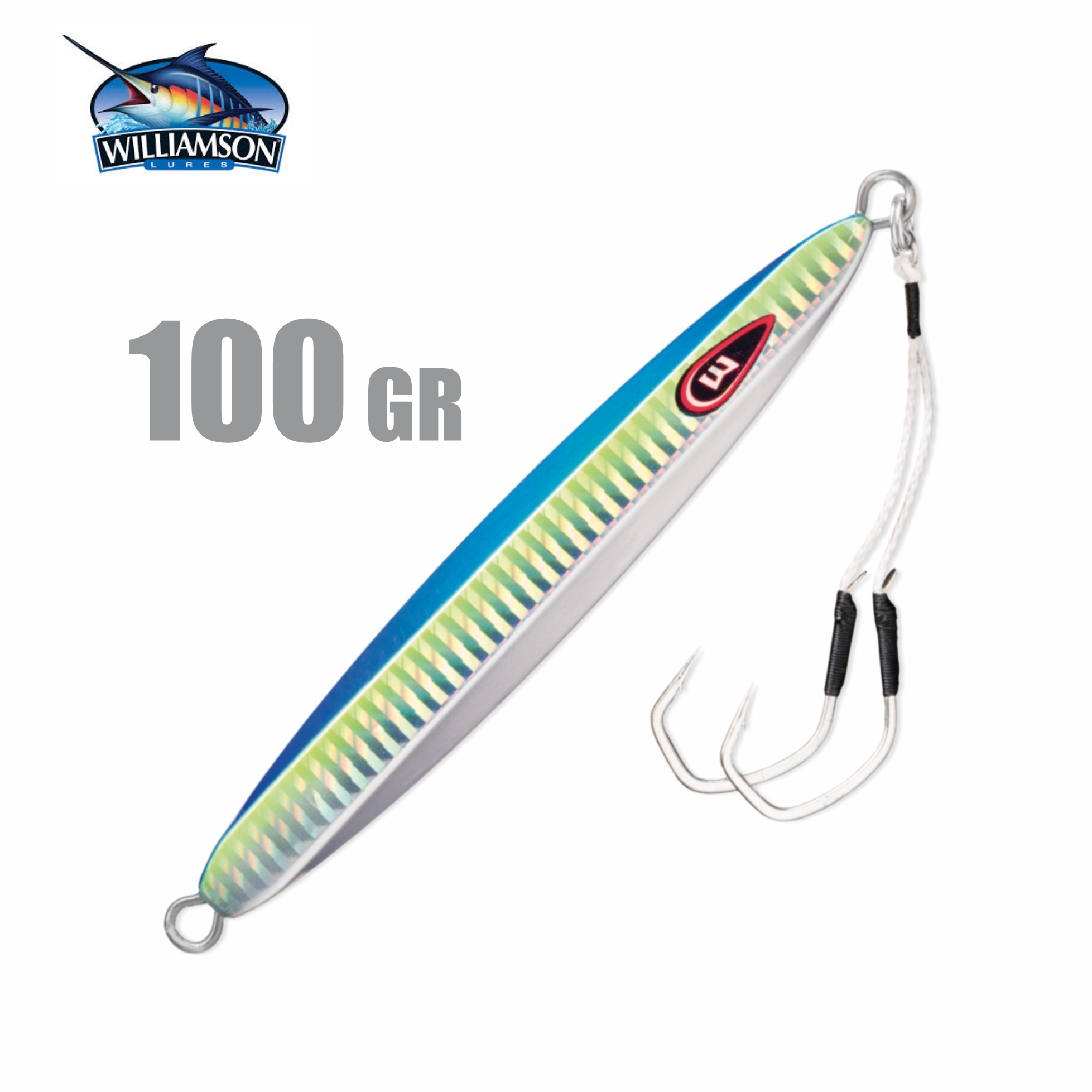 Marca: Williamson Modelo: Slide Dancer Dimensões: (CxL): 10,5cm x 2cm Peso Aprox.: 100g Suporte Hook Duplo VMC Incluso. Tipo: Slow pitch e Vertical jig Composição: Aço e Chumbo