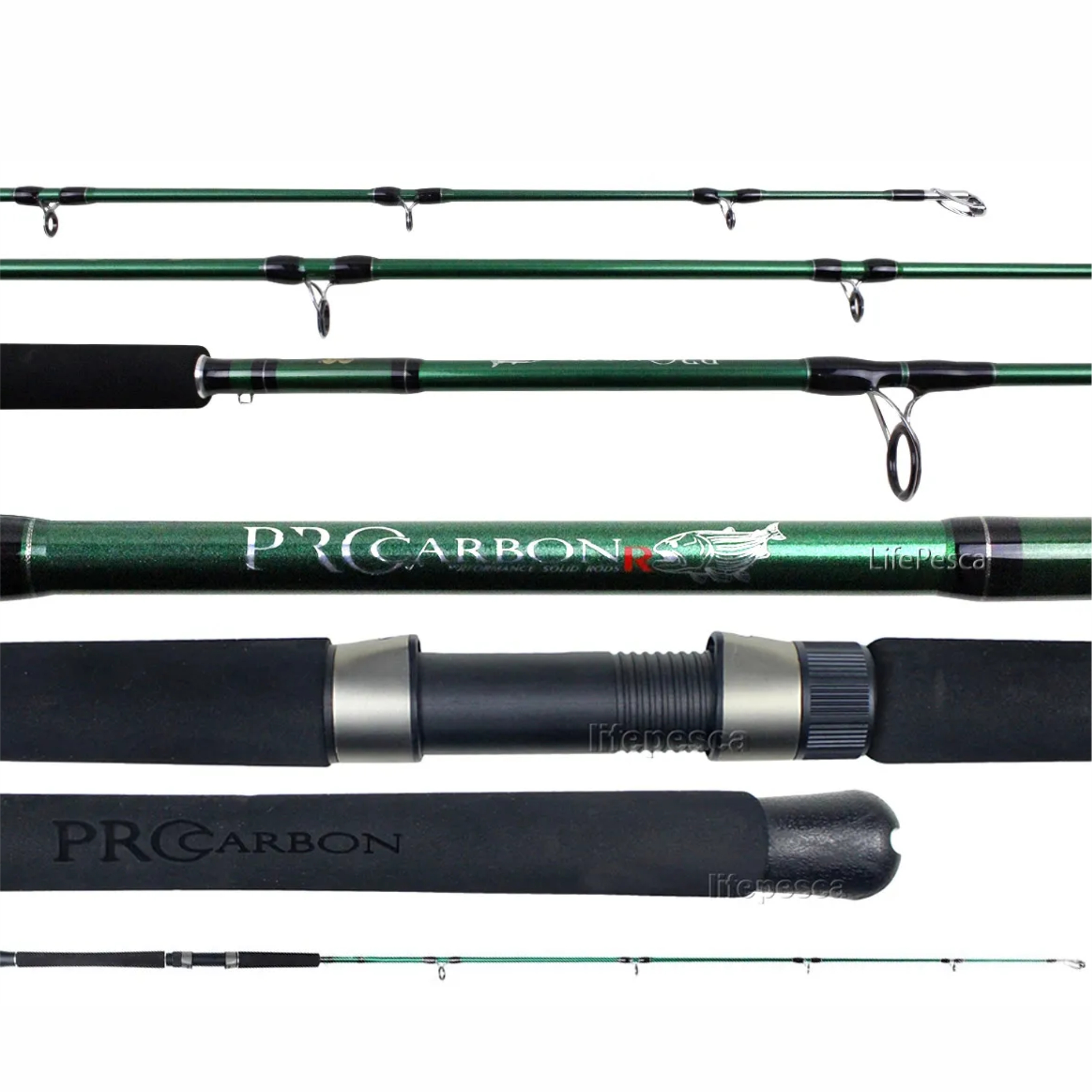 Blank maciço de carbono; Butt cap emborrachado; Ponteira anti-enrosco; Adaptador fighting belt; Cabo de E.V.A.; Passadores de aço inox; Anel dos passadores: Zircônico; Passador Fuji;